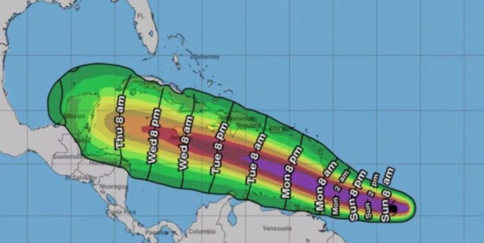 El NHC, con sede en Miami (Florida), informó en su boletín más reciente de alerta de huracán para la mayoría de las Islas Barlovento, como también amenaza de tormenta tropical para las islas Martinica y Dominica.